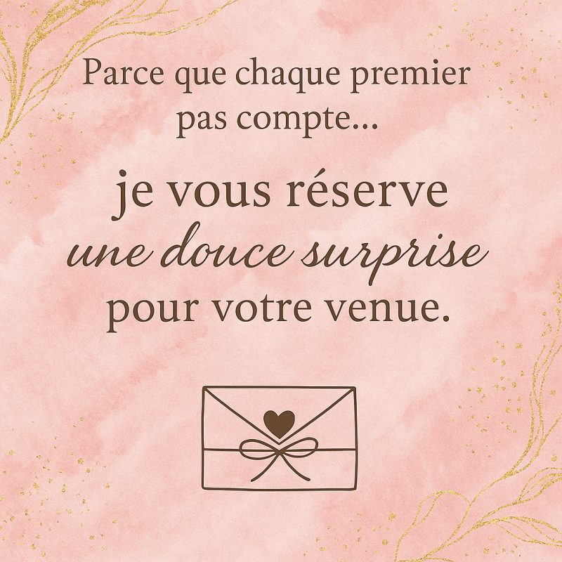 ✨« Parce que chaque nouvelle rencontre est précieuse, je tiens à vous accueillir avec une attention particulière. C’est pourquoi j’ai choisi d’offrir à chaque nouveau client un petit présent, pour célébrer le chemin que vous entreprenez et vous souhaiter la bienvenue dans mon espace de libération et de bien-être. »✨